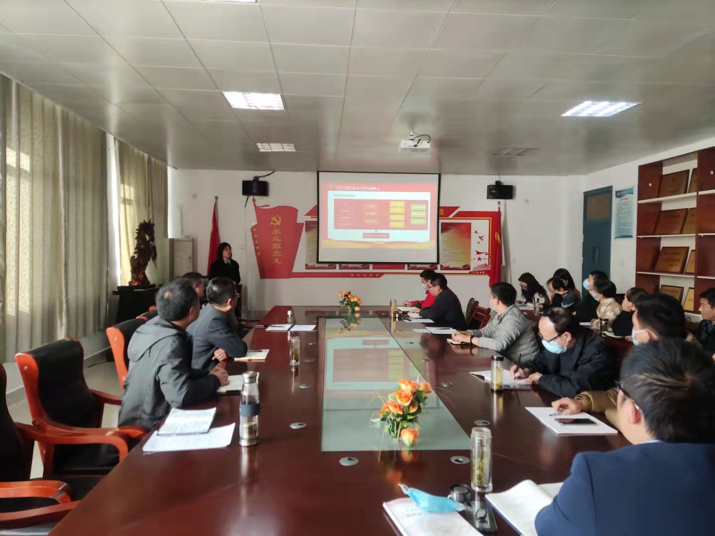 11月9日下午,半岛网页版登录入口举办“学四史 守初心 强师德 扬师风”主题教育党课,全体教职工党员参加。教工支部书记王平俊为党员们上了一堂题为《学四史强师德师风》的党课。